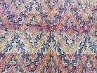 This authentic Moroccan rug reflects centuries of traditional weaving techniques from the Beni M'Guild tribe. With a cranberry red, green, tangerine, and light magenta palette overlaid by a subtle teal-blue lozenge pattern, it offers a rich visual story. Designed for versatility, it can be used pile side up for warmth or reversed during warmer months, effectively giving two rugs in one.