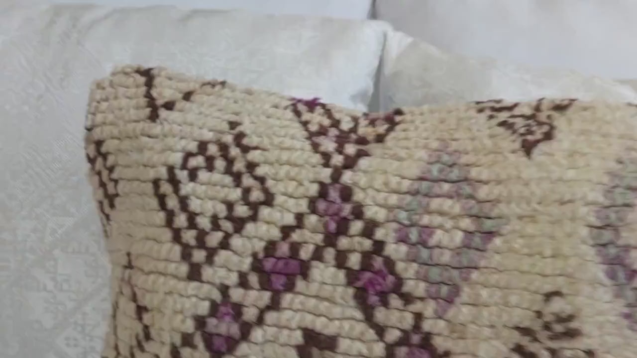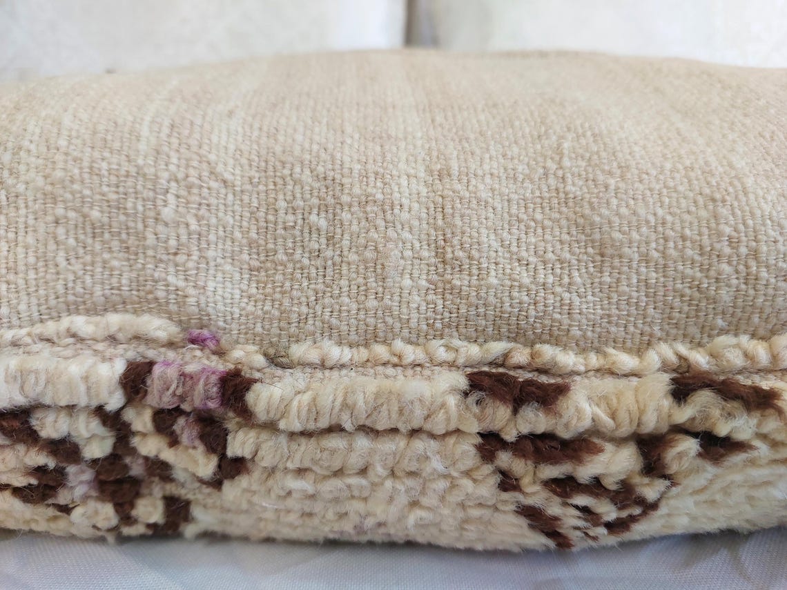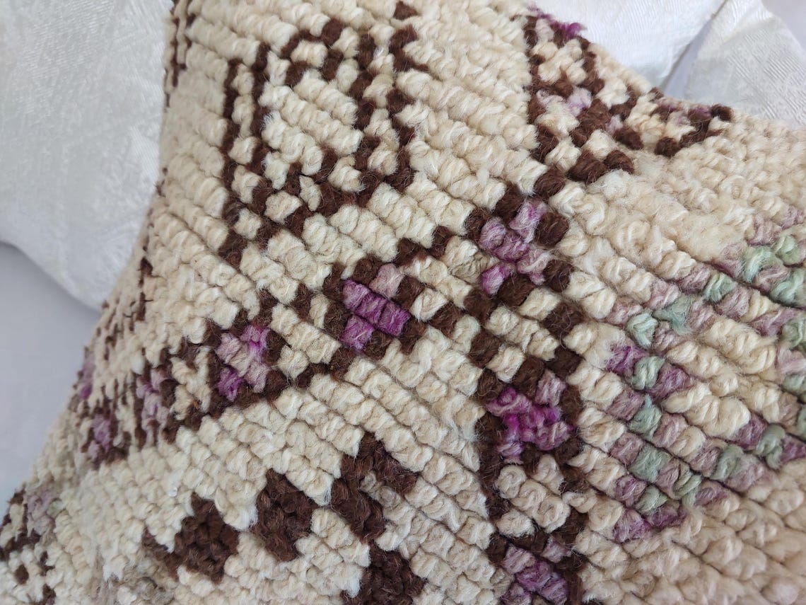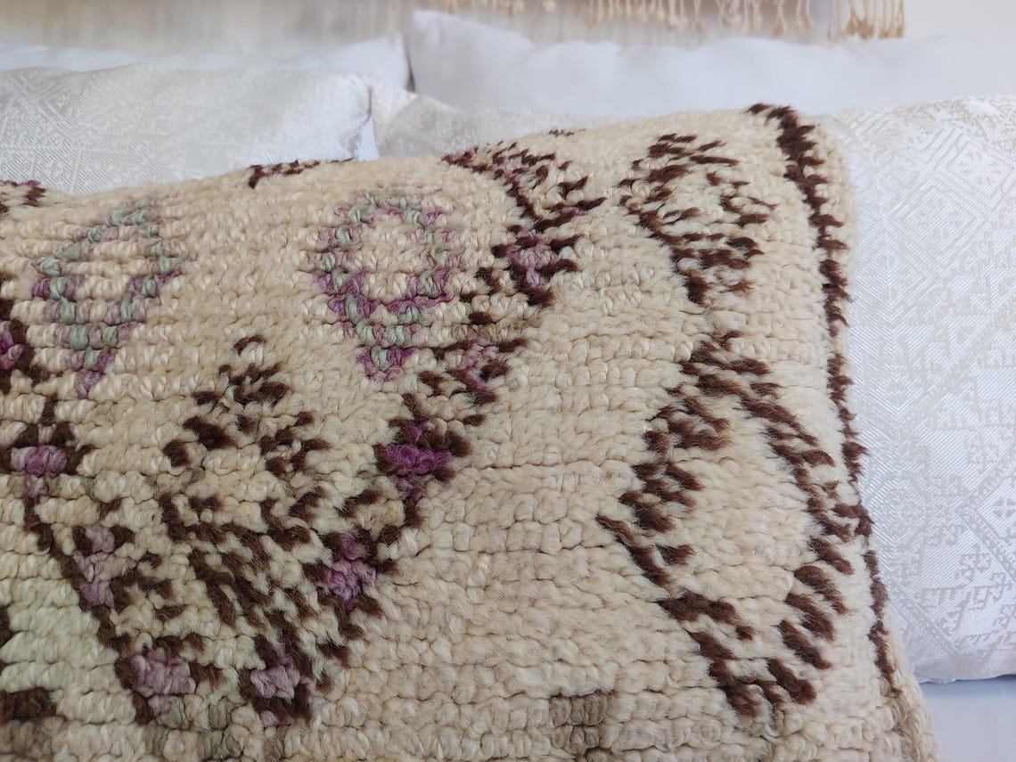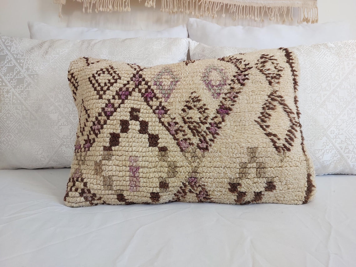 Handmade Beni Ourain Wool Pillow — Vintage Moroccan, Bohemian Accent, Unique Home Decor