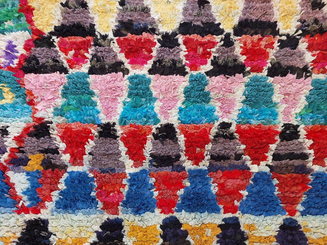 Boucherouite Rug Handmade Moroccan Berber: Colorful Recycled Fabric 3.6x6.6