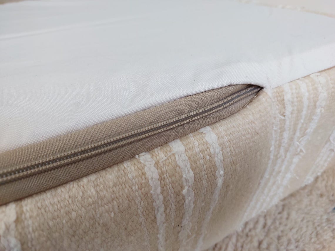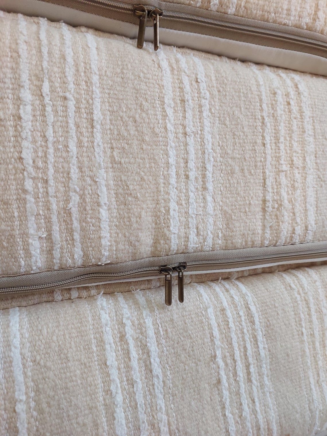 Handmade Moroccan Kilim Pouf , Neutral Berber Wool Ottoman , Flatweave Kilim Poufs, Bohemian Home Decor