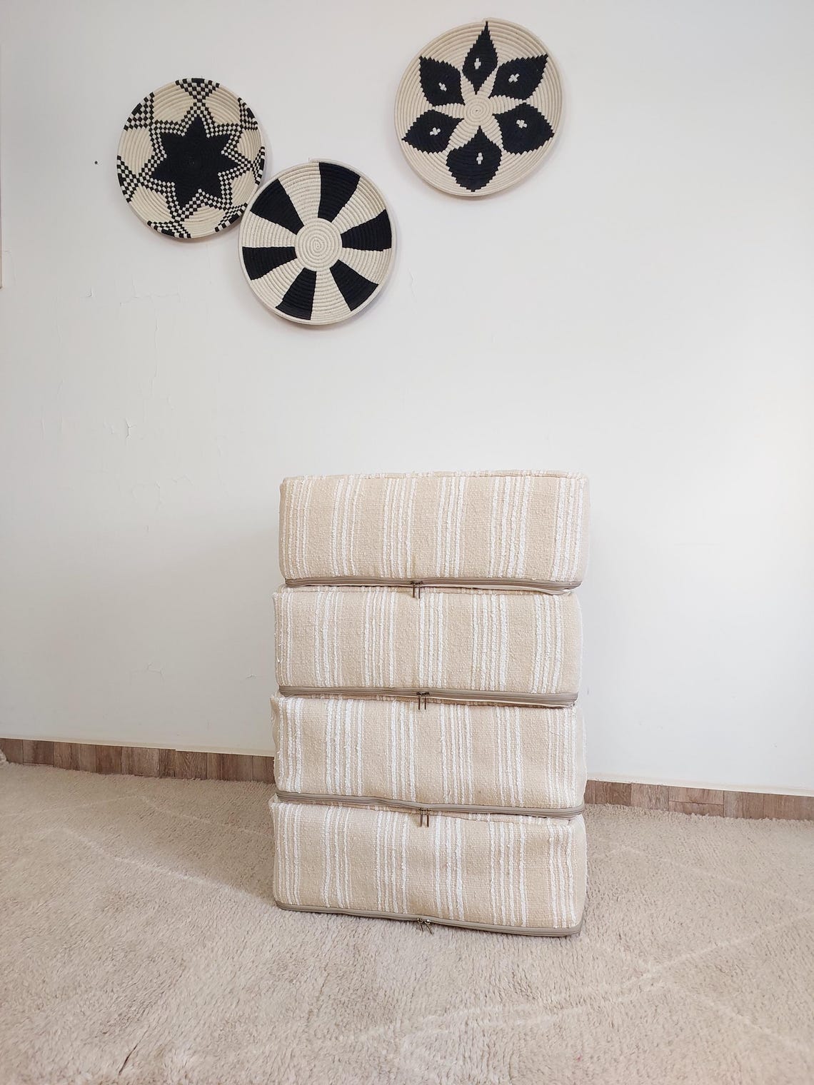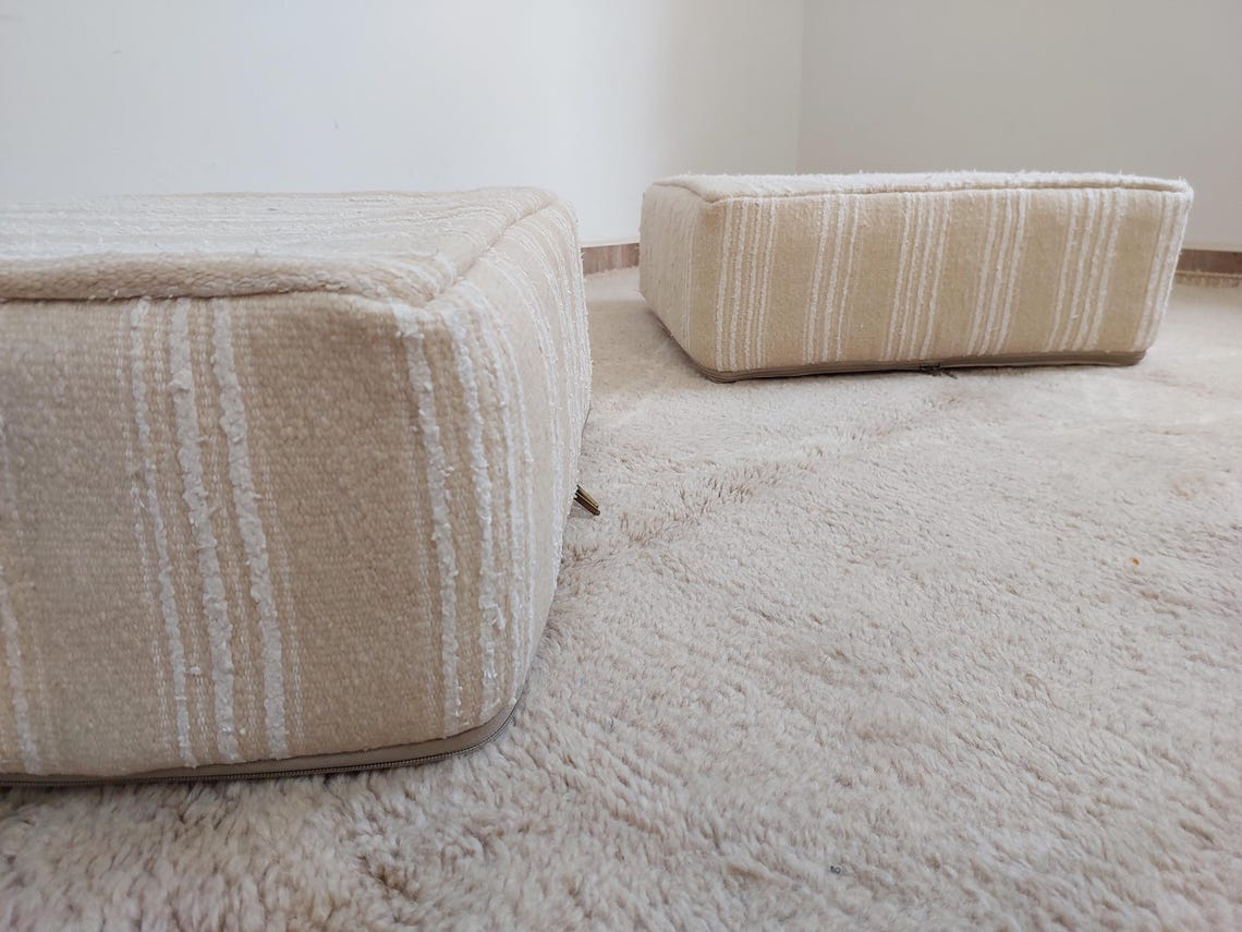 Moroccan • Handmade • Wool & Cotton • Bohemian • Berber • Floor Pouf