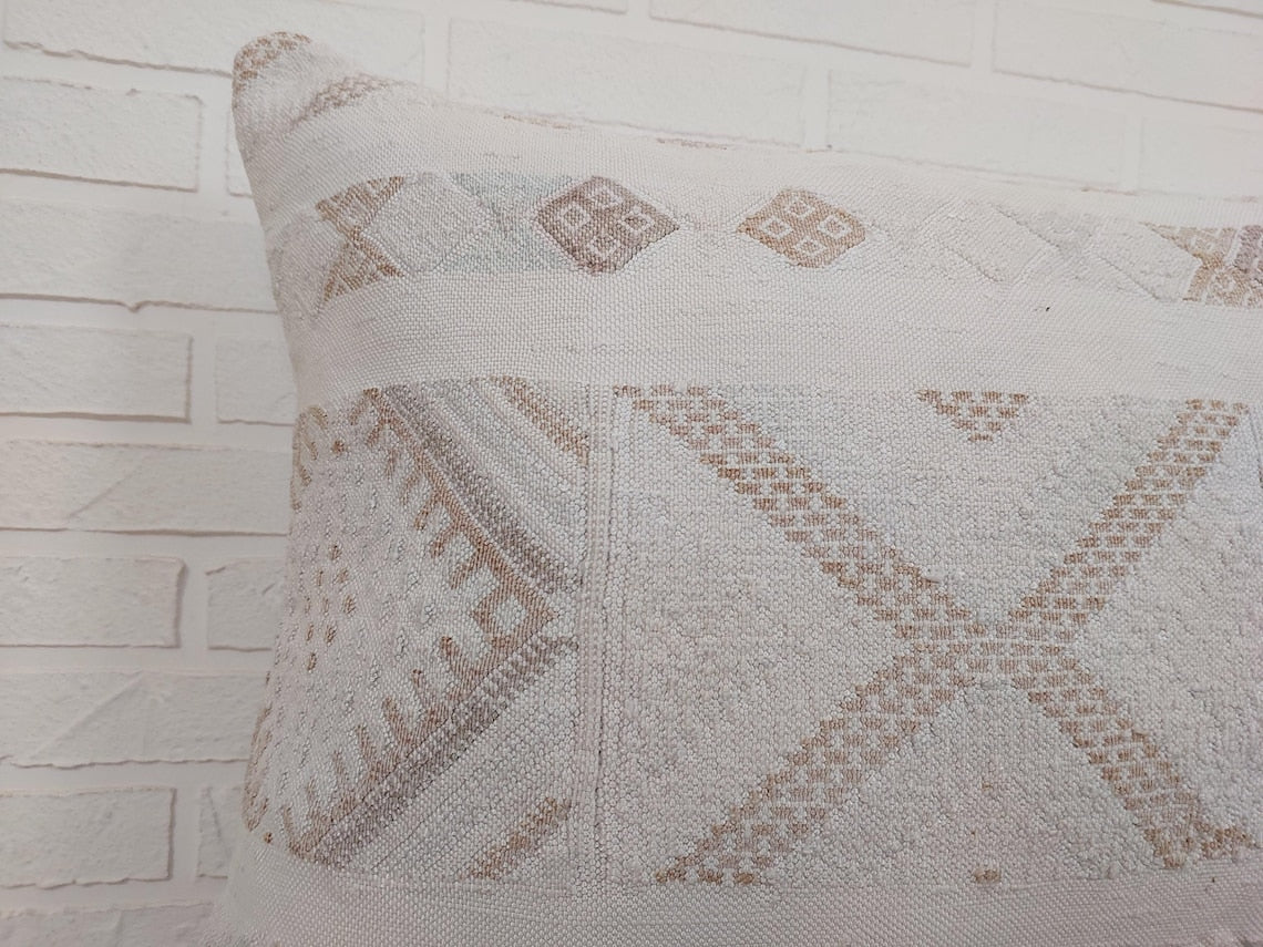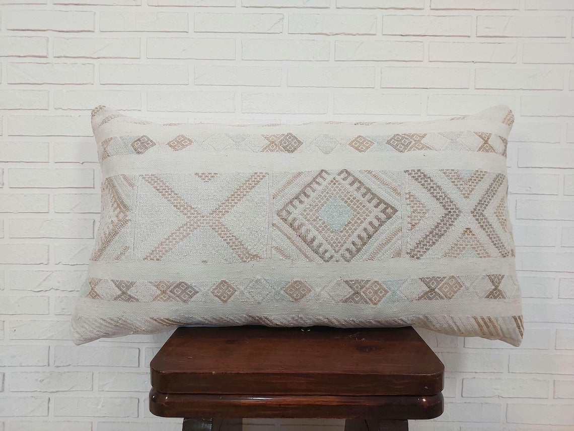 Handmade Moroccan Lumbar Cactus Silk Pillow Cover - Decorative Sabra Cushion for Home Decor (19x35in)