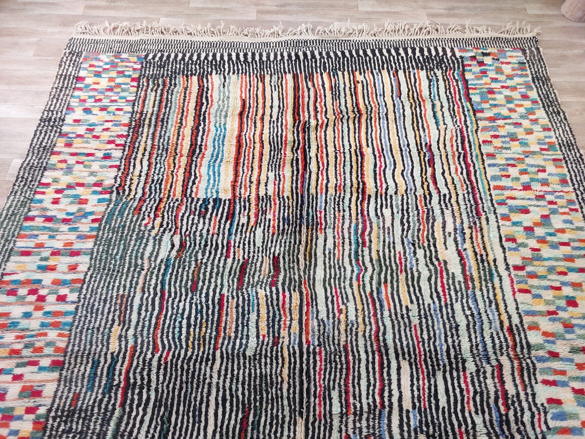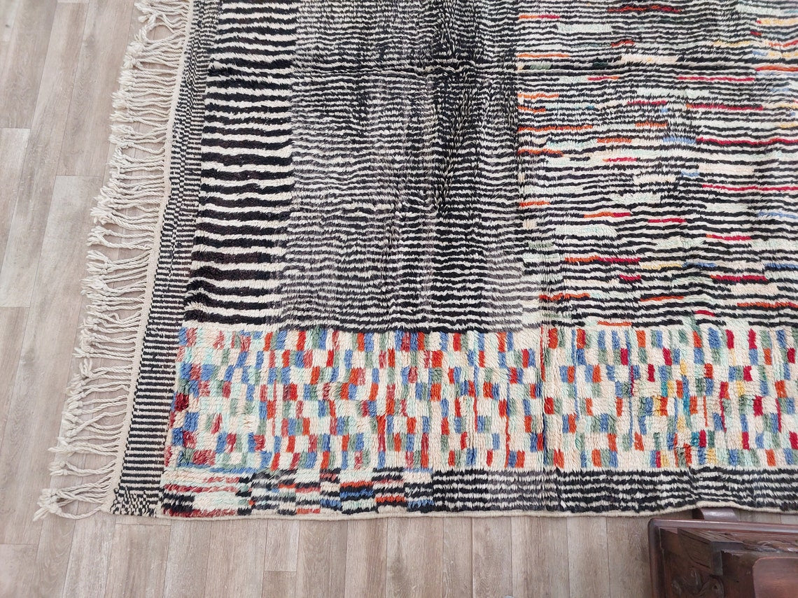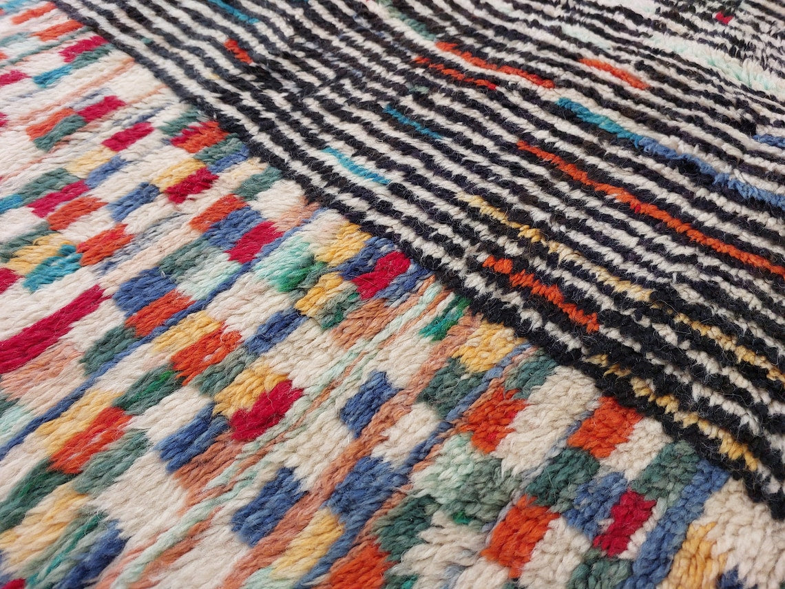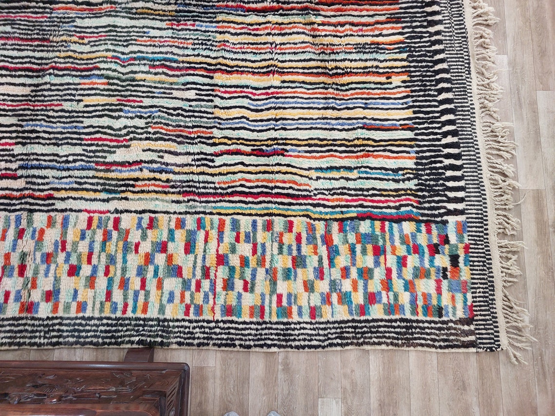 Moroccan Beni Mrirt Wool Rug: Oversized Handwoven Plush Colorful Carpet