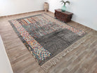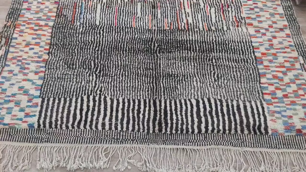 New high-quality Moroccan colorful gray rug in Beni Mrirt style. This oversized, luxurious rug combines modern design with traditional Berber craftsmanship, offering both elegance and comfort.
