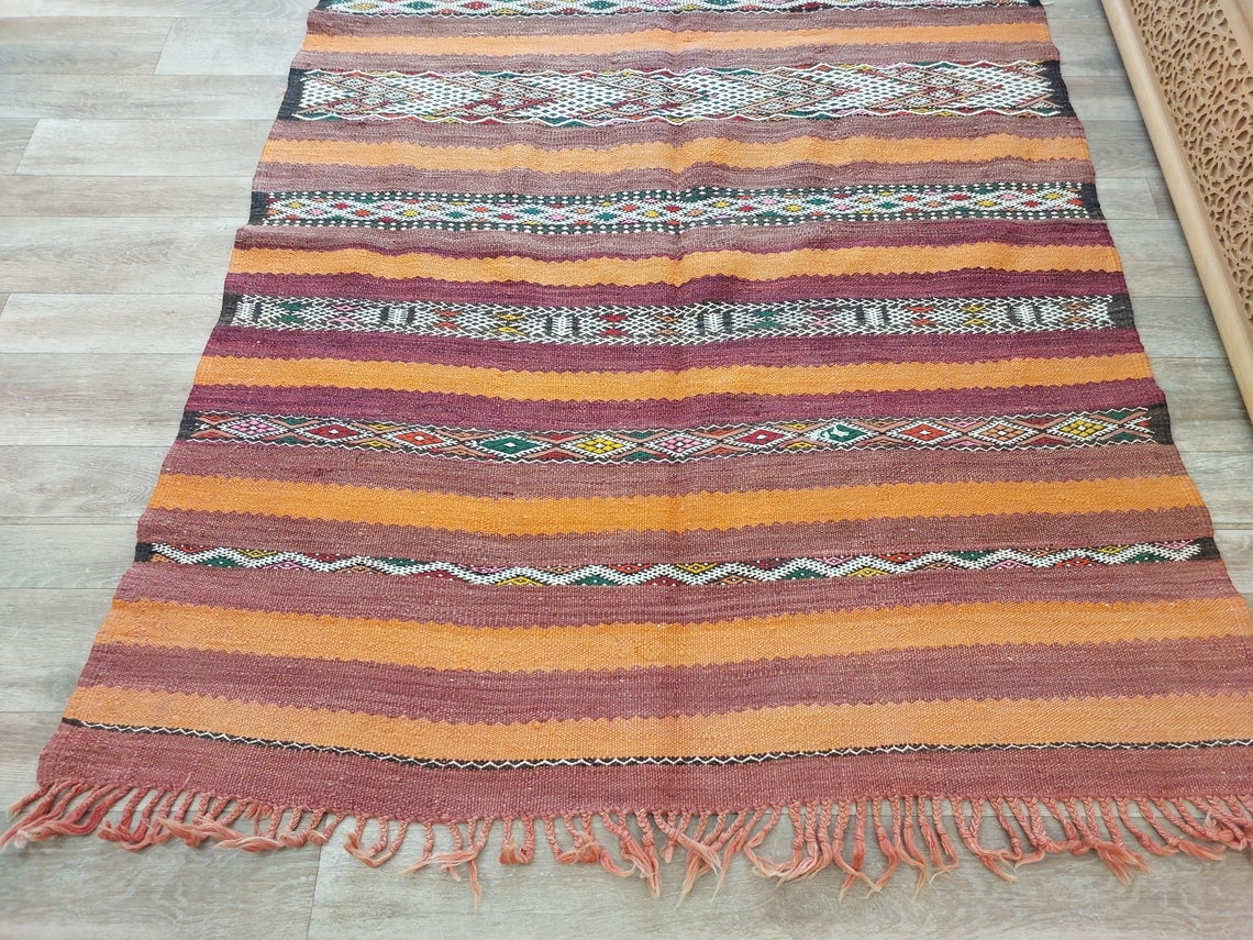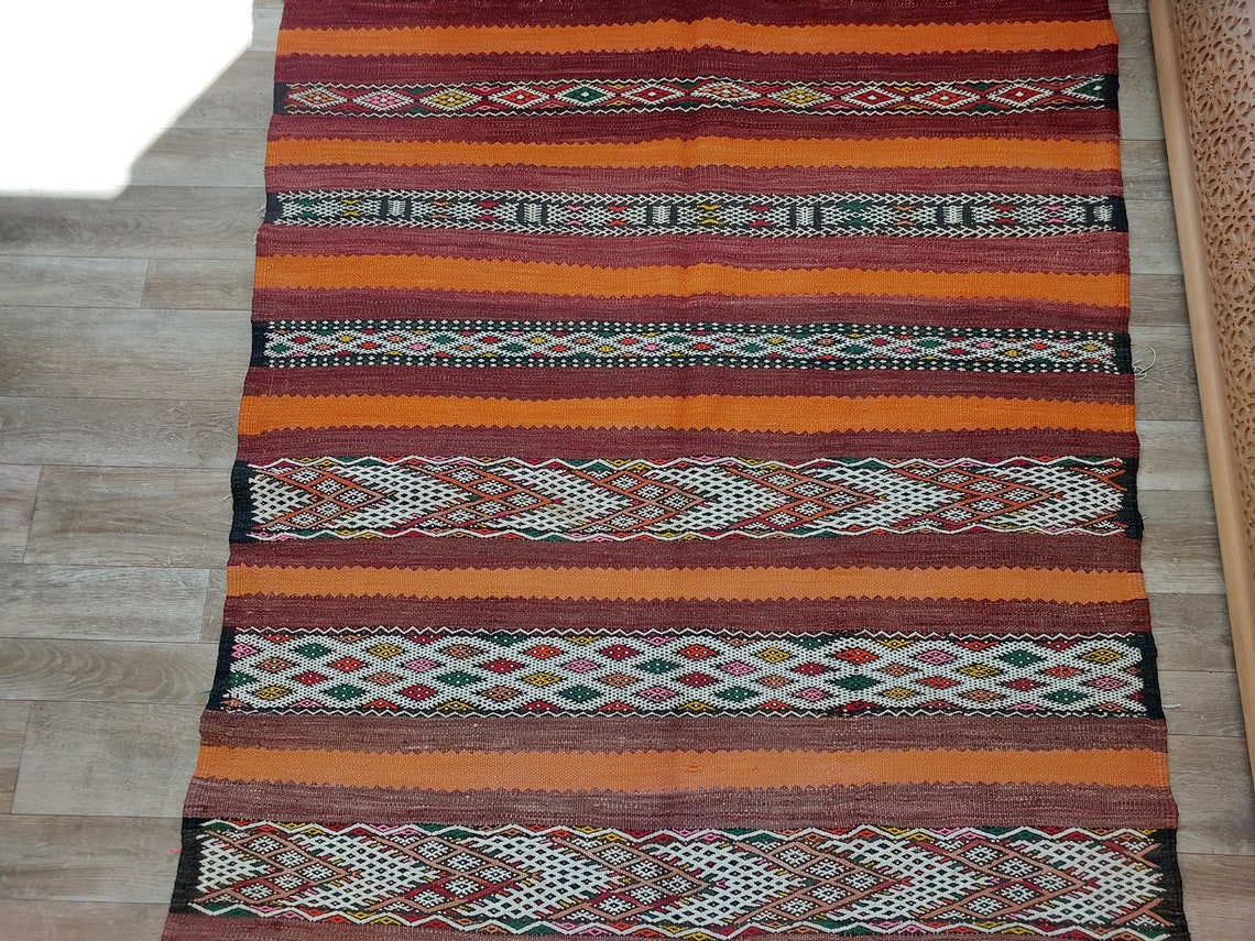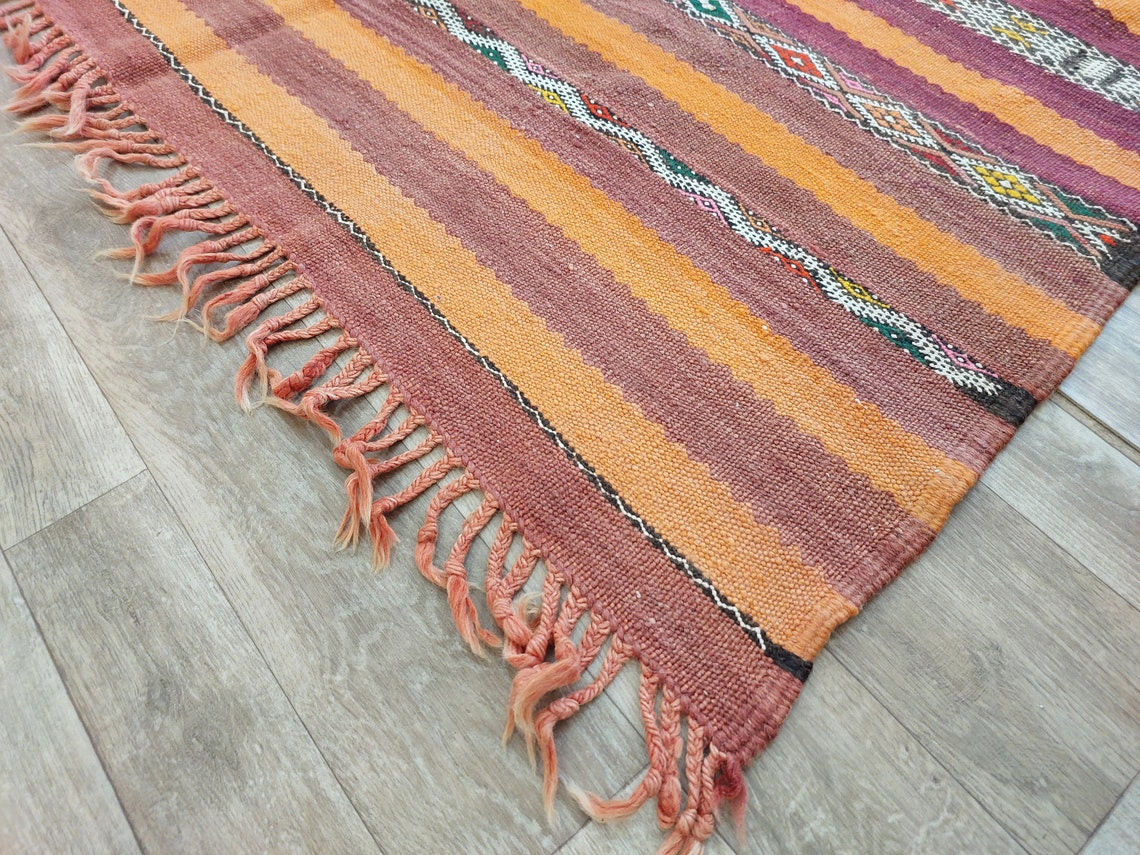 Moroccan Kilim Rug - Vintage Moroccan Rug - Flatweave Berber Rug - Kilim Rug - Hanbel Rug - Zemmour Tribe.