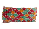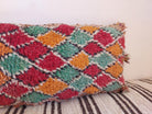 This double-sided vintage Moroccan pillow from the Aït Bou Ichaouen tribe is crafted entirely by hand from Berber wool. Measuring 12 × 22 inches (29 × 57 cm), it is in excellent vintage condition with no holes or stains. Ships unstuffed with a convenient opening for easy filling and hand stitching closure. Perfect for layering on sofas or beds to add an authentic, bohemian touch. Cleaned, washed, and ready to use, bringing genuine Moroccan craftsmanship into your home.