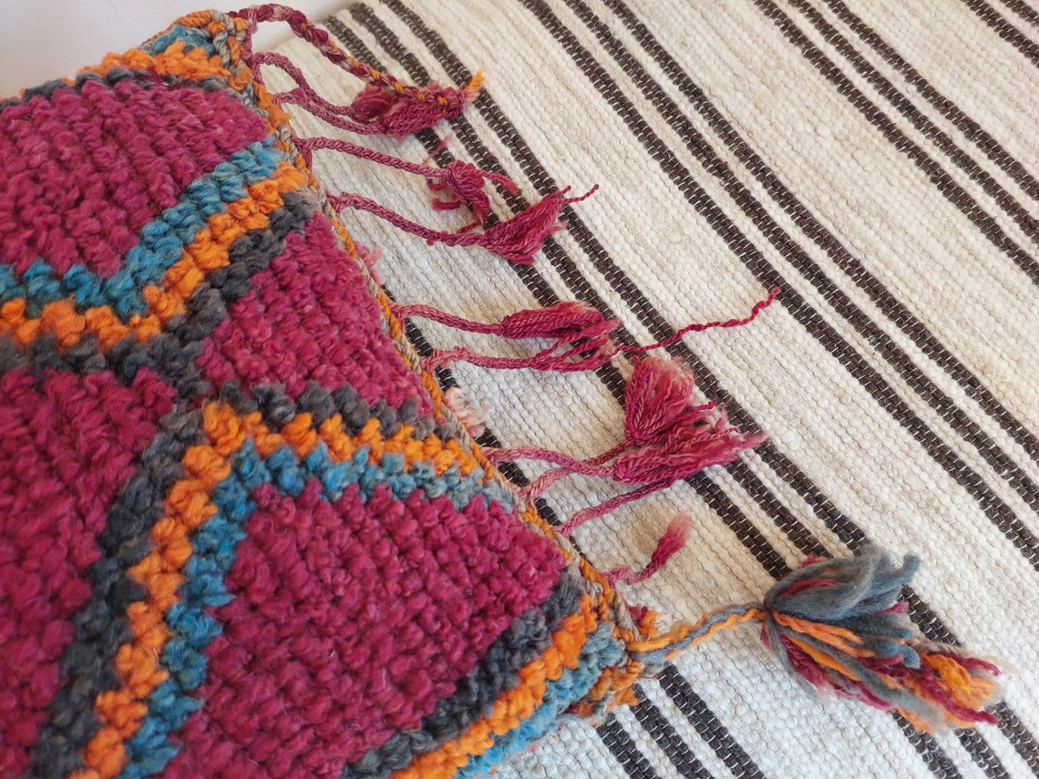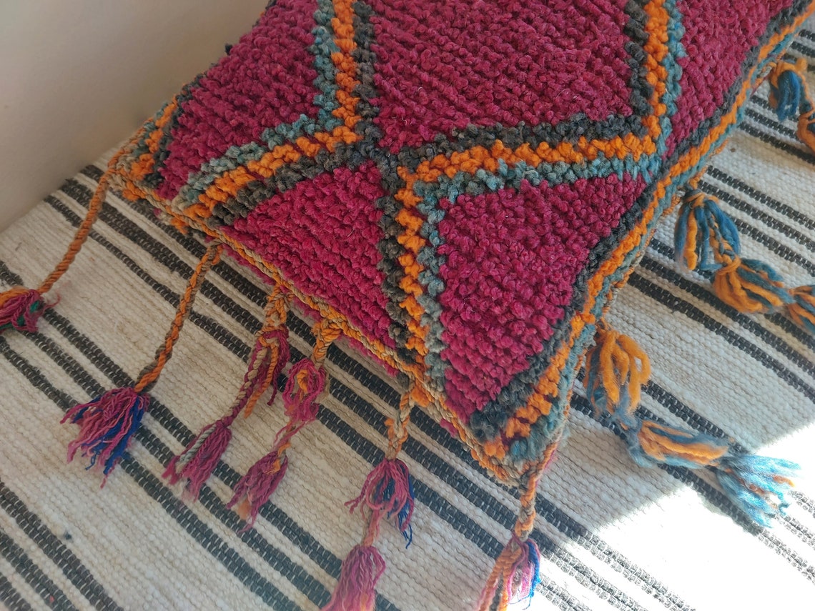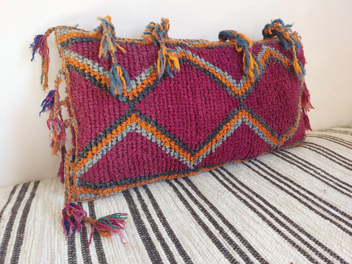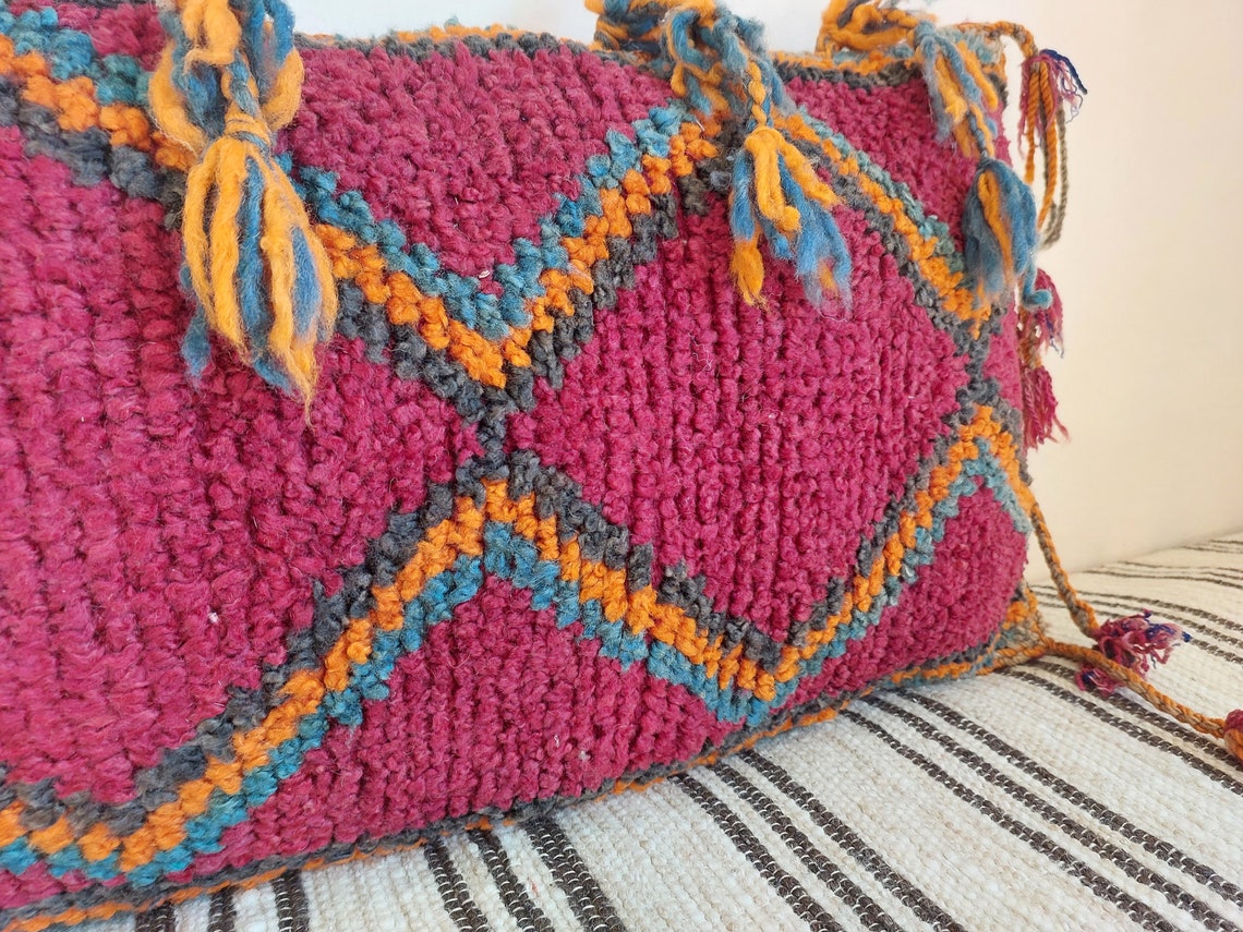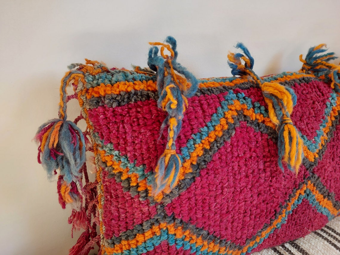 Original Vintage Ait Bou Ichaouen Cushion - Double Sided Wool Pillow - Tribal Cushion - Moroccan Pillow Case - Handmade Talsint Pillow.