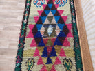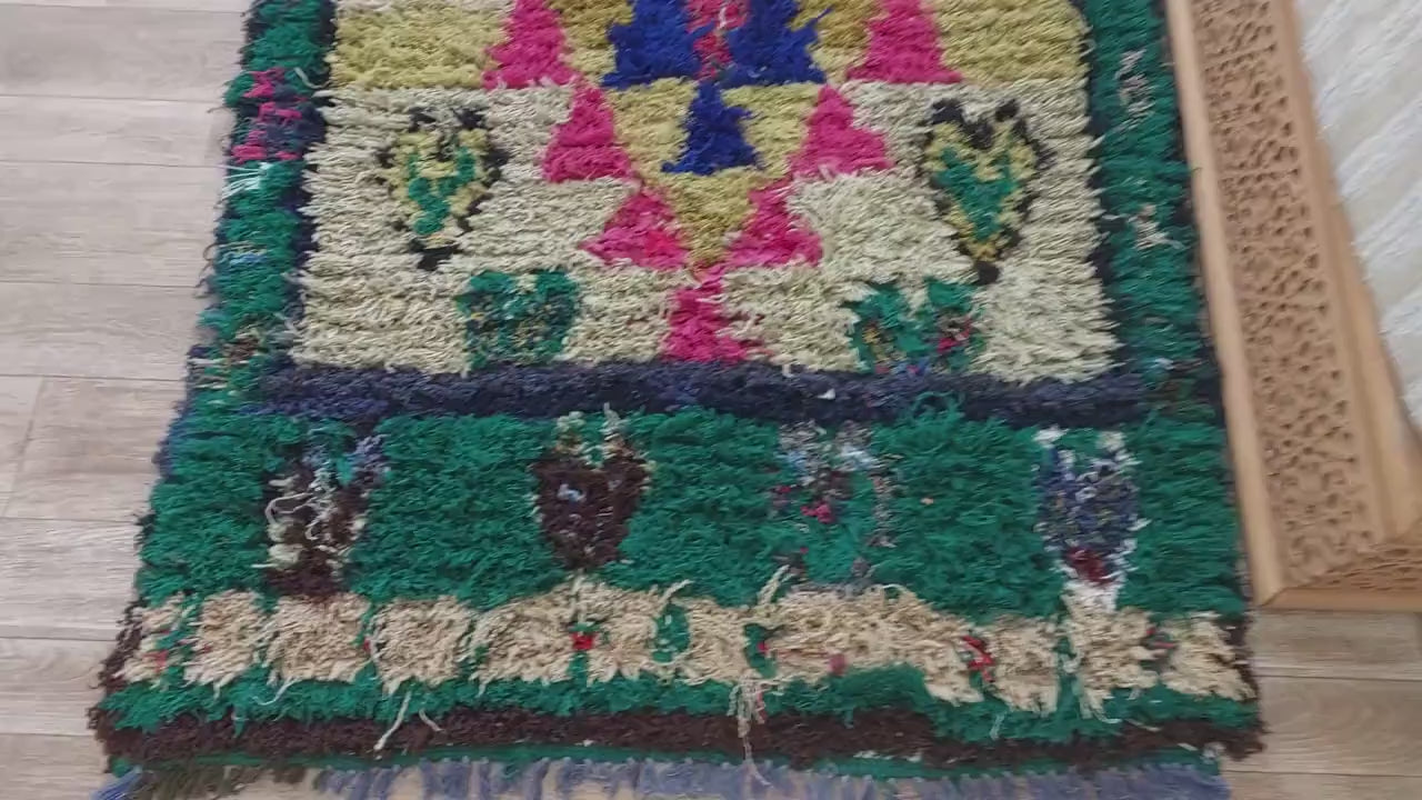 Small Boucherouite Rug , Moroccan Rug Runner - Vintage Azilal Rug - Hand Woven Berber Carpet - Moroccan Rug 100 X 216 cm