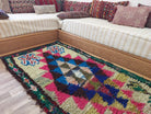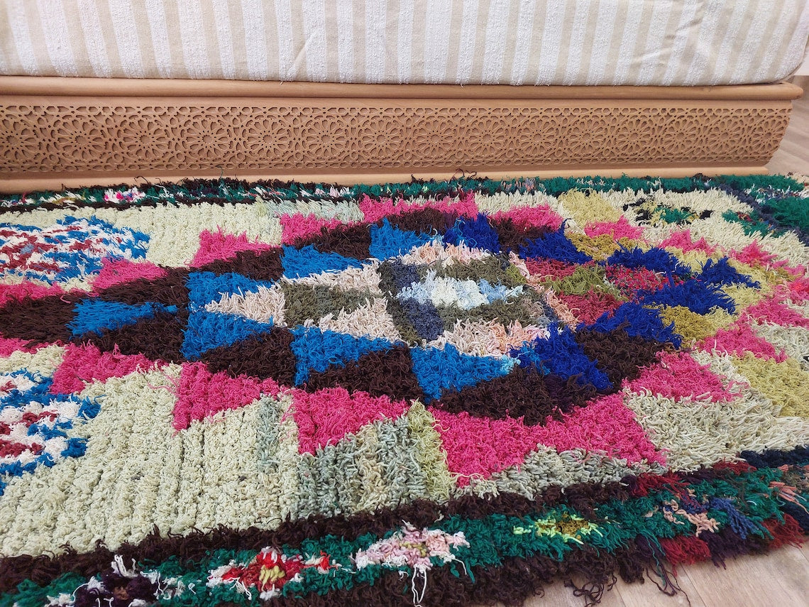 Handmade Boucherouite/Berber Rug With Vibrant Patchwork — Ideal For Moroccan, Bohemian, Or Eclectic Interiors