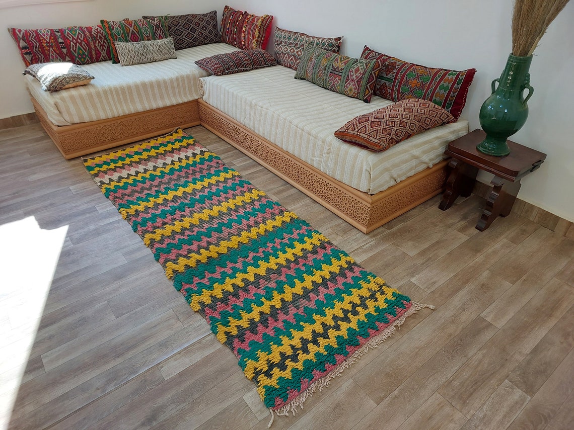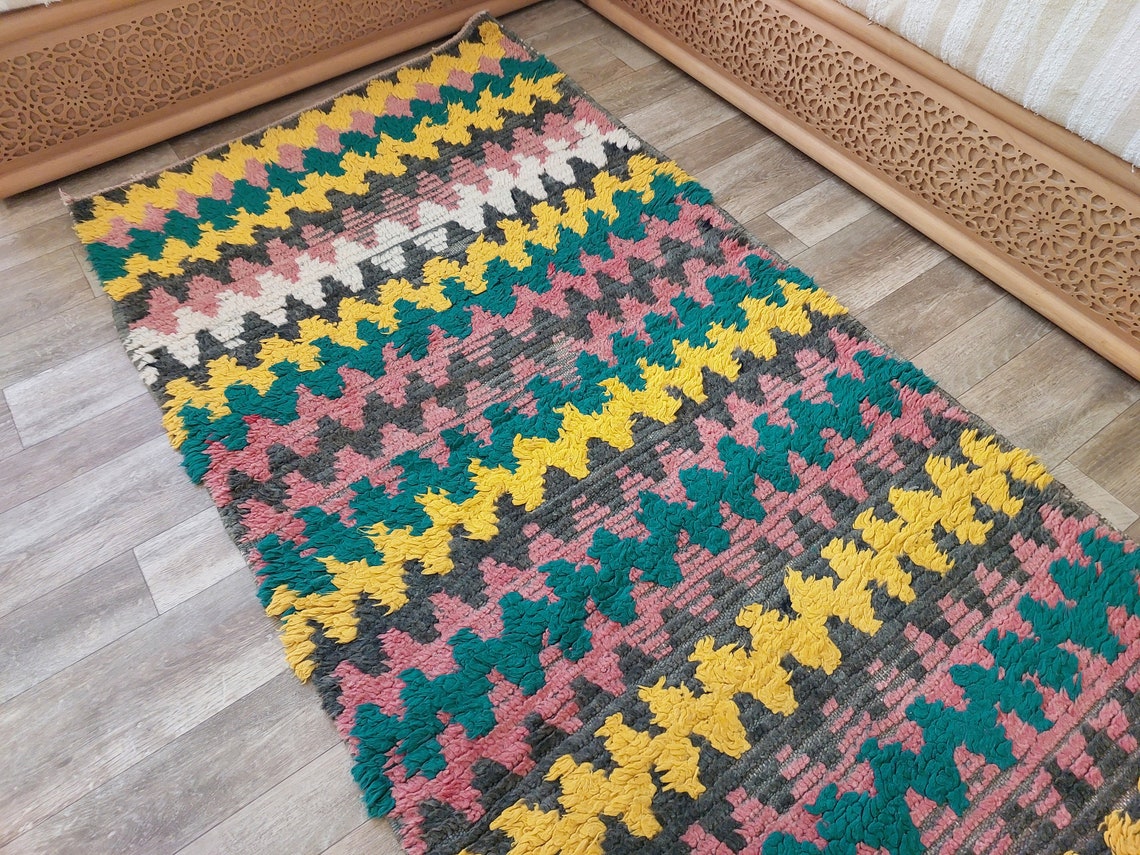 Handmade Boujaad Boucherouite Runner Rug — Colorful Patchwork Design, Perfect For Moroccan, Bohemian, Or Eclectic Interiors