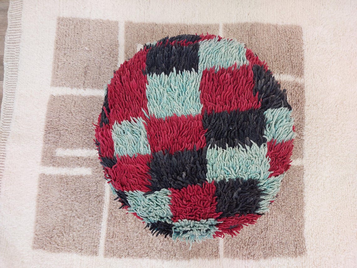 Vintage Berber Rug Ottoman Pouf: Handmade Moroccan Floor Cushion With Checkered Pattern