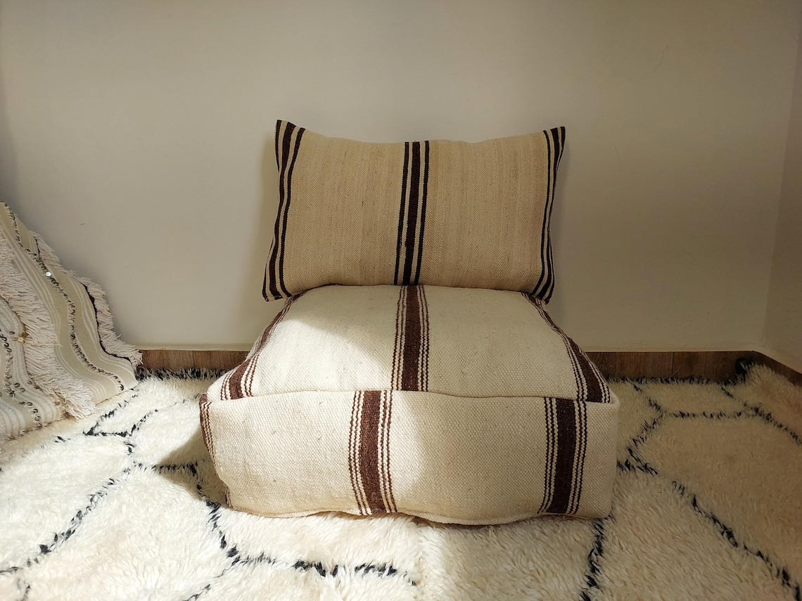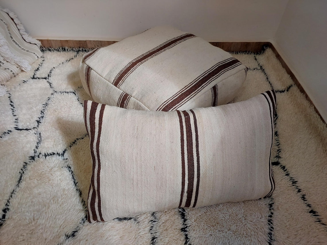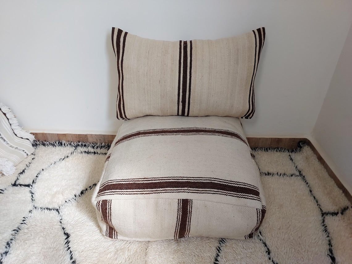 Set Of Two Moroccan Wool Pouf And Large Pillow