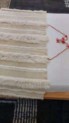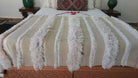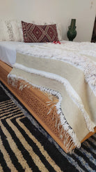 A Vintage Moroccan Handira Wedding Blanket, Handmade By Berber Women In The Atlas Mountains, Featuring A Neutral Ivory And Cream Palette. This Authentic 30-35 Year Old Piece Is Free Of Sequins And Perfect For Adding Warmth, Texture, And Timeless Moroccan Elegance To Any Room.