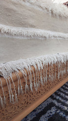 Vintage Moroccan Berber Handira: Handmade Ivory Wool Wedding Blanket - Authentic Tribal Textile