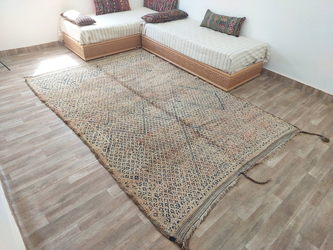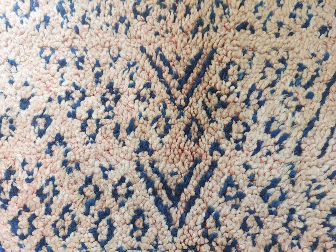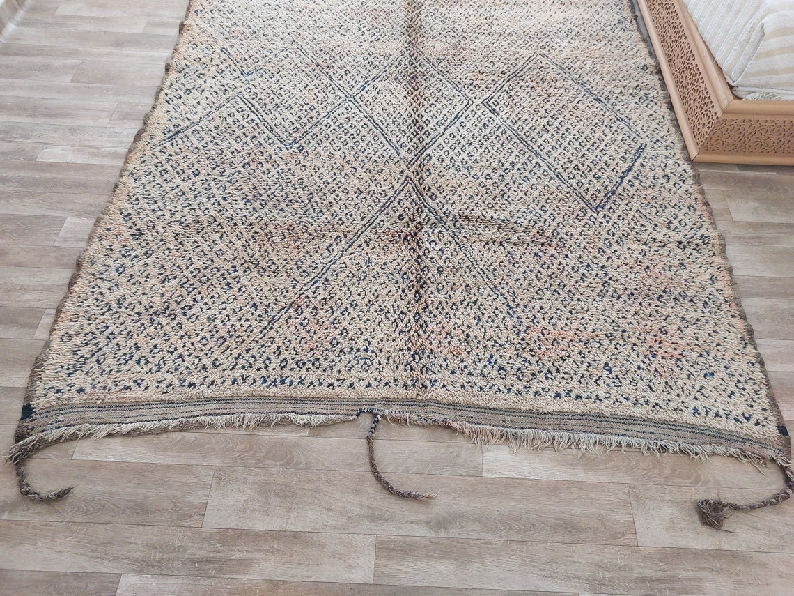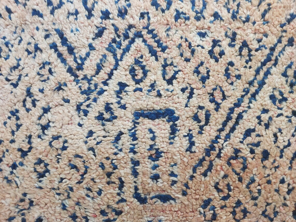 Bring home an authentic vintage treasure with this handwoven Moroccan rug from the Zayan tribe, a rare collectible adorned with deep indigo tones that confirm its pre-1950/1960 origin. This beautifully preserved piece showcases cultural artistry, timeless charm, and the rich heritage of Moroccan weaving.