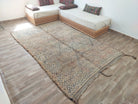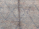 Lovingly nicknamed “DUST”—inspired by the natural tones seen on its backside—this exceptional vintage rug is a rare find from the Zayan tribe. Its deep, rich indigo hues are characteristic of early mid-century Moroccan textiles, a color that is now extremely difficult to find in modern rugs.