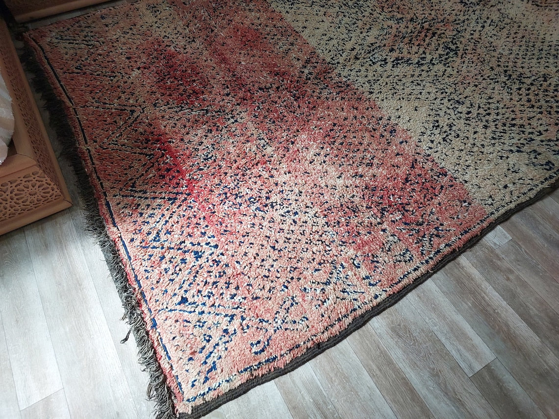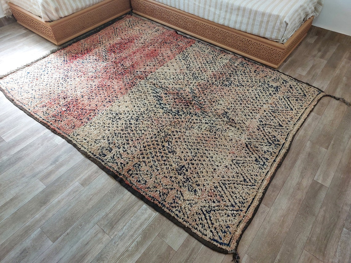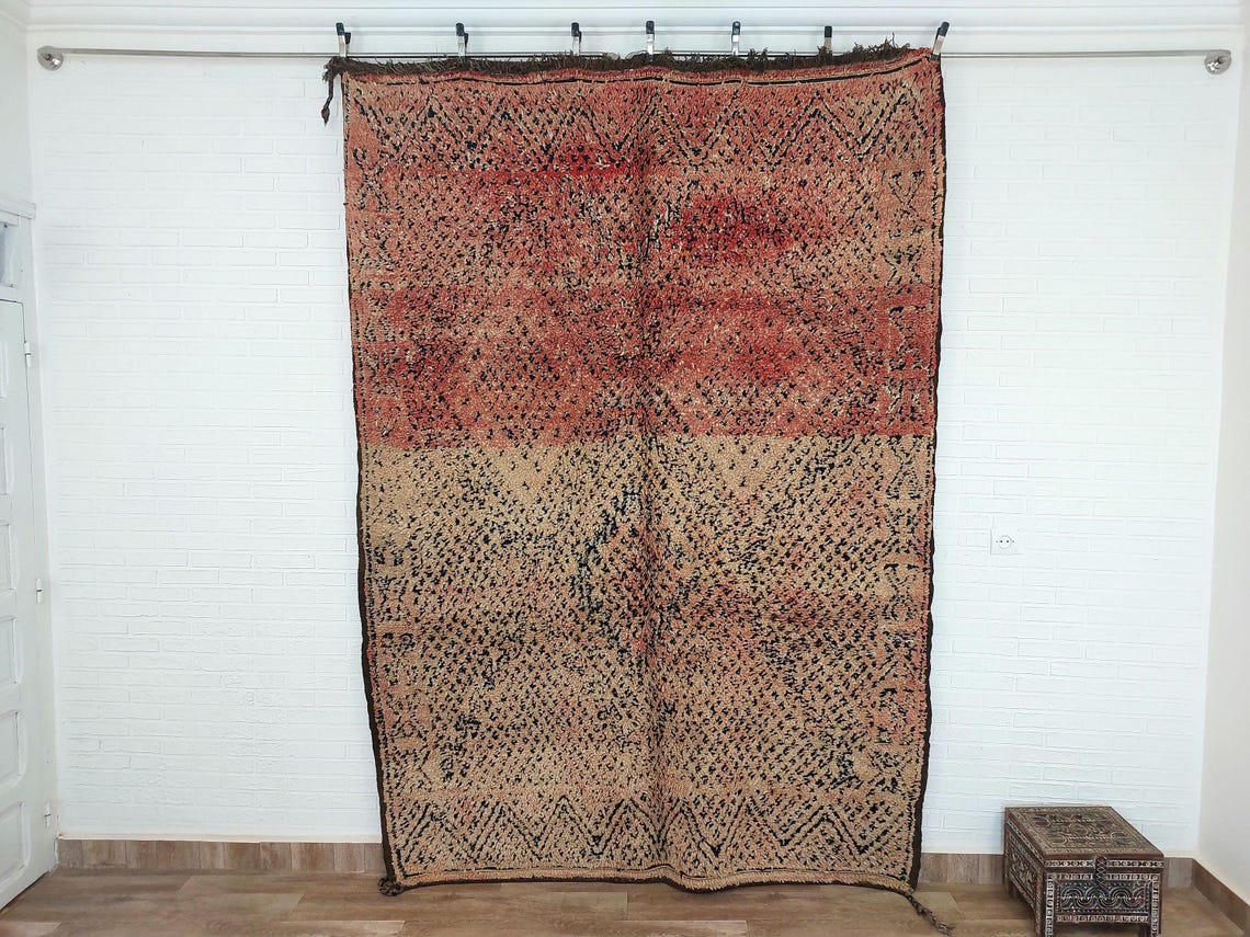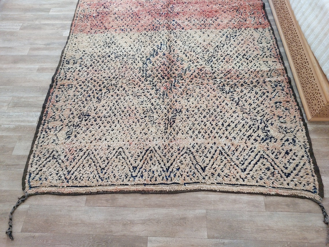 A vintage Moroccan Berber rug showcasing traditional Zayan tribe motifs and artisan craftsmanship, perfect for living areas, bedrooms, or as a unique decorative accent.