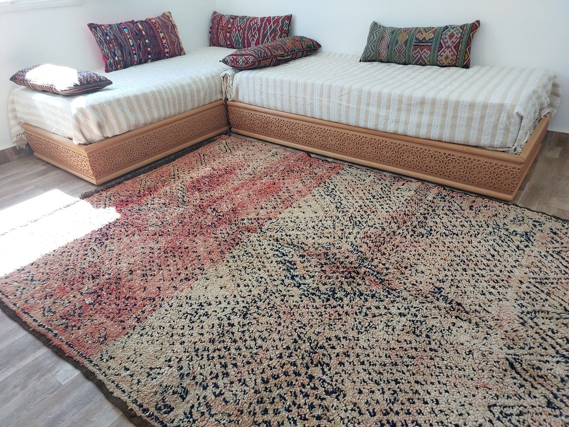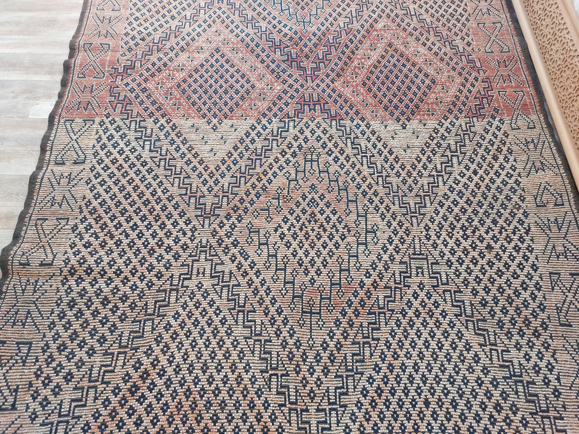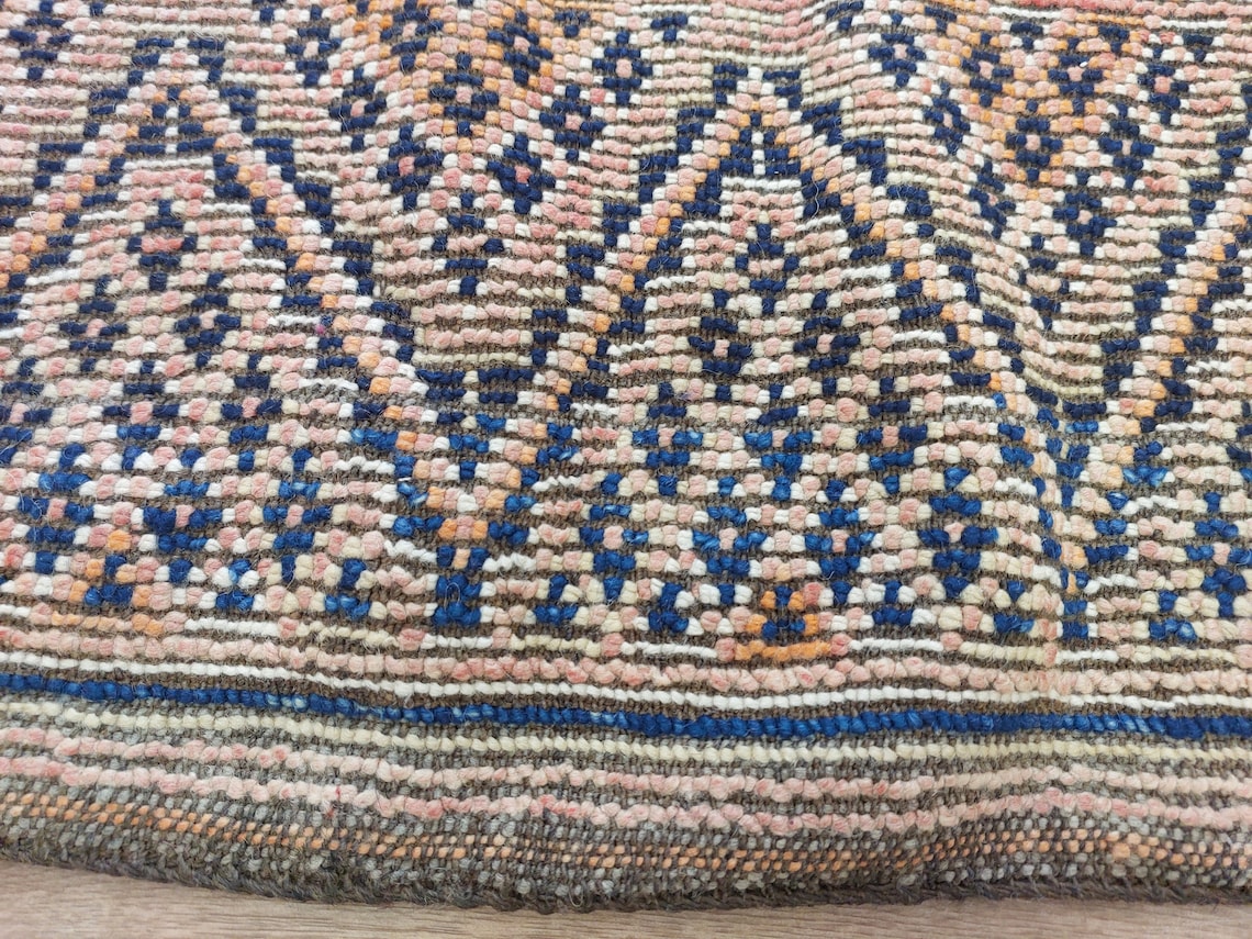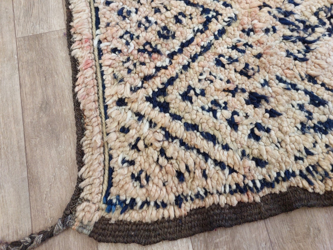 A vintage Moroccan Berber rug showcasing traditional Zayan tribe motifs and artisan craftsmanship, perfect for living areas, bedrooms, or as a unique decorative accent.